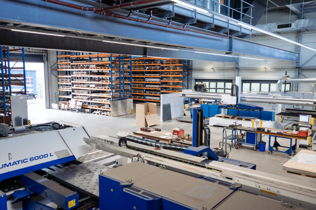 Mehr als 5.000 m² Produktionsfläche mit hochautomatisiertem Maschinenpark und eigener 300 kWp Photovoltaik-Anlage zur Stromerzeugung.